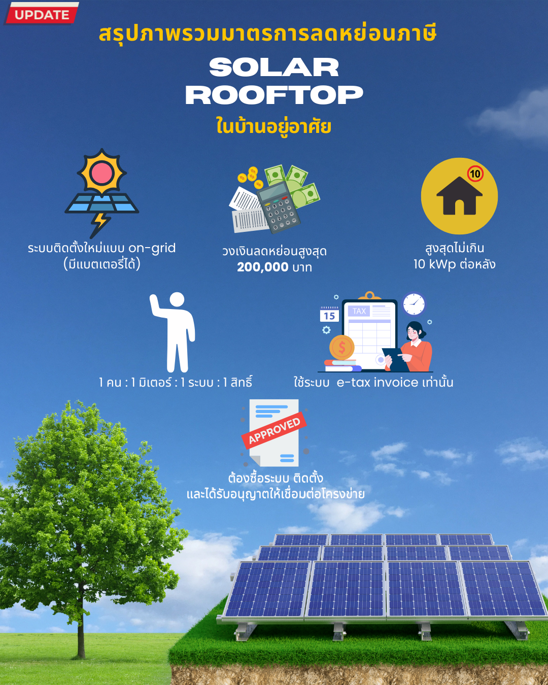 สำหรับใครที่กำลังวางแผนติดตั้งโซลาร์เซลล์ การรู้สิทธิ์ลดหย่อนภาษีนี้จะช่วยให้วางแผนการเงินได้ดีขึ้น และทำให้การลงทุนในพลังงานสะอาดคุ้มค่ามากยิ่งขึ้น
