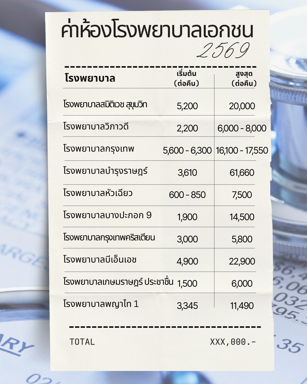 (ยังไม่รวมค่าพยาบาลและบริการอื่นๆ)