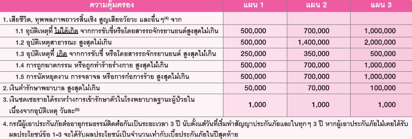 หมายเหตุ : * กรณีเลือกแผนความคุ้มครอง 1,000,000 บาท