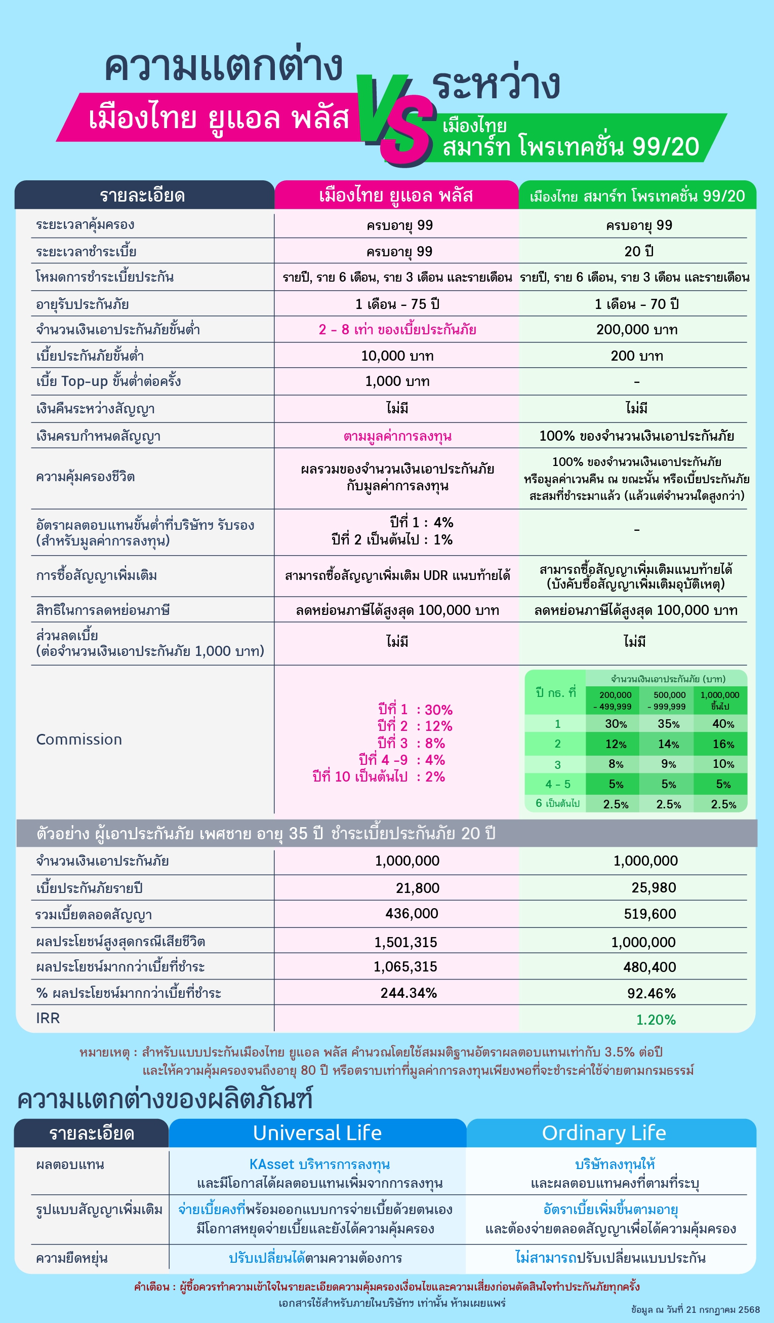 - สามารถซื้อสัญญาเพิ่มเติม UDR แนบท้ายกรมธรรม์ได้